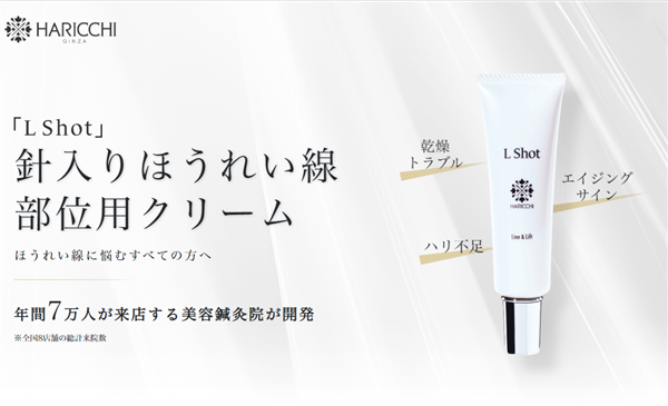L Shotは、天然針成分とリフトアップ成分が配合された針入りほうれい線用クリームです。